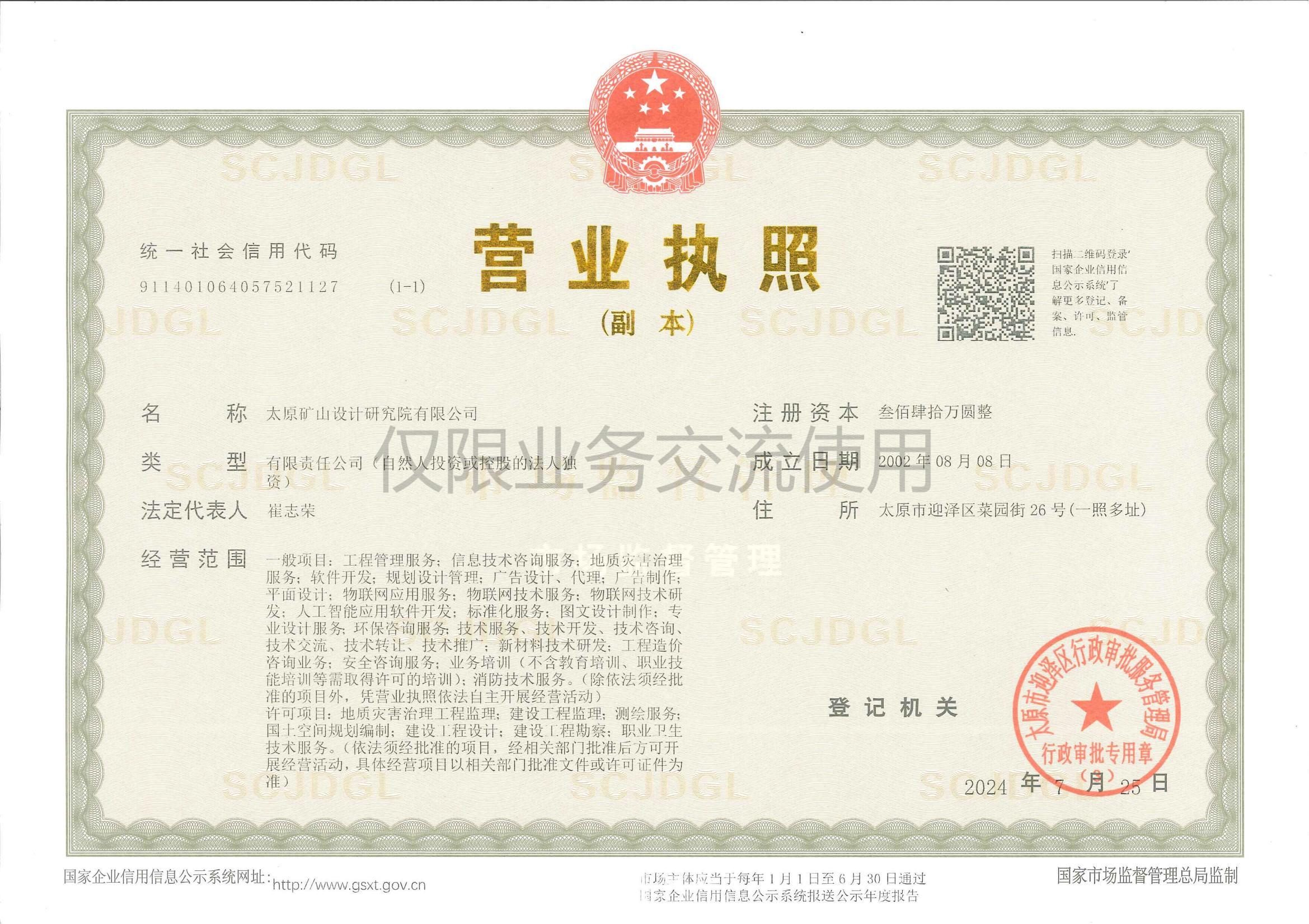 公司主要從事礦山采選尾工程設(shè)計、智能化及自動化礦山、建設(shè)綠色礦山、工程技術(shù)咨詢、規(guī)劃設(shè)計管理、施工勞務(wù)分包、土地規(guī)劃、地質(zhì)災(zāi)害治理服務(wù)、安全生產(chǎn)技術(shù)服務(wù)、軟件開發(fā)及測繪服務(wù);煤礦、非煤礦山設(shè)計;煤礦、非煤礦山、危險化學(xué)品安全評價(業(yè)務(wù)范圍:煤炭開采業(yè);金屬、非金屬及其他礦采選業(yè);石油加工業(yè),化學(xué)原料、化學(xué)品及醫(yī)藥制造業(yè));非煤礦山、冶金等工商貿(mào)企業(yè)、危險化學(xué)品從業(yè)單位安全生產(chǎn)標(biāo)準(zhǔn)化評審;公共場所衛(wèi)生、生活飲用水、公共場所集中中央空調(diào)通風(fēng)系統(tǒng)的檢驗、檢測、評價;職業(yè)健康檢測檢驗;建設(shè)項目職業(yè)病危害評價、職業(yè)危害因素檢測與評價;安責(zé)險技術(shù)服務(wù);業(yè)務(wù)培訓(xùn)等工作。